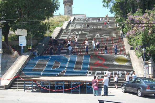 O PCP decidiu andar por Coimbra. E vejam só o que os jovens comunistas decidiram fazer: pintar as escadarias da Universidade de Coimbra. Bonito....